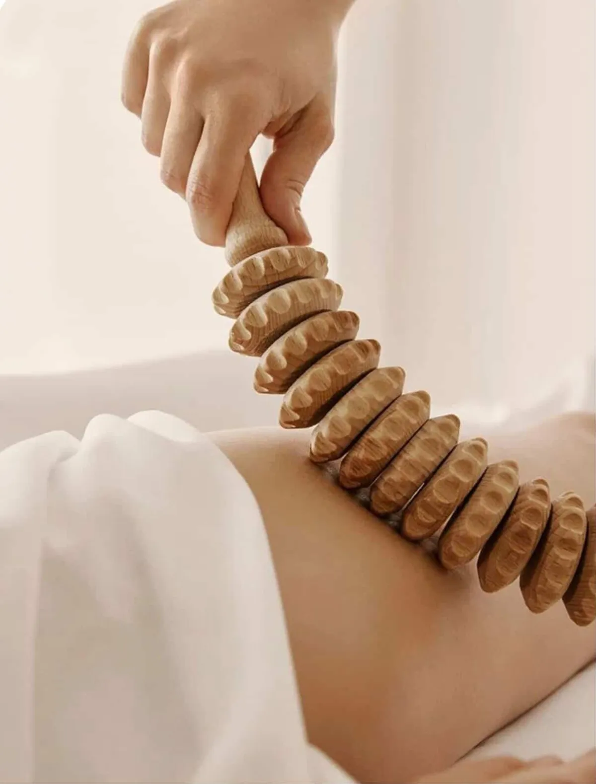 Massage colombien utilisant des outils en bois pour raffermir, sculpter et améliorer la circulation.